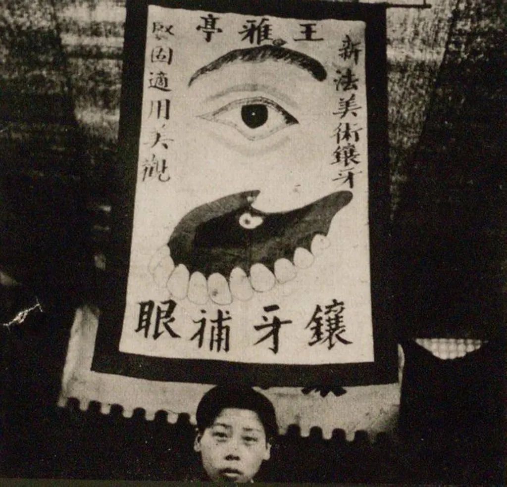 白塔寺庙会上的镶牙补牙招牌,这还是一位牙科与眼科复合型的大夫。