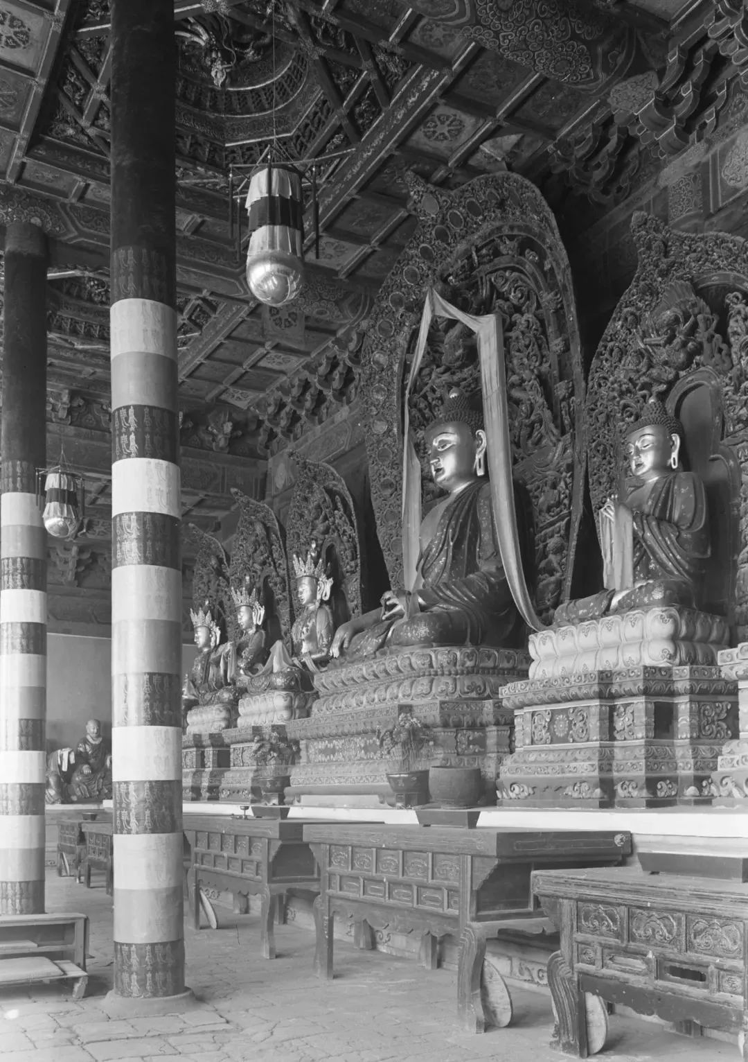 具六神通殿位于塔院之内,殿内供奉的三方佛等佛像与陈设至今保存完好。1936年摄
