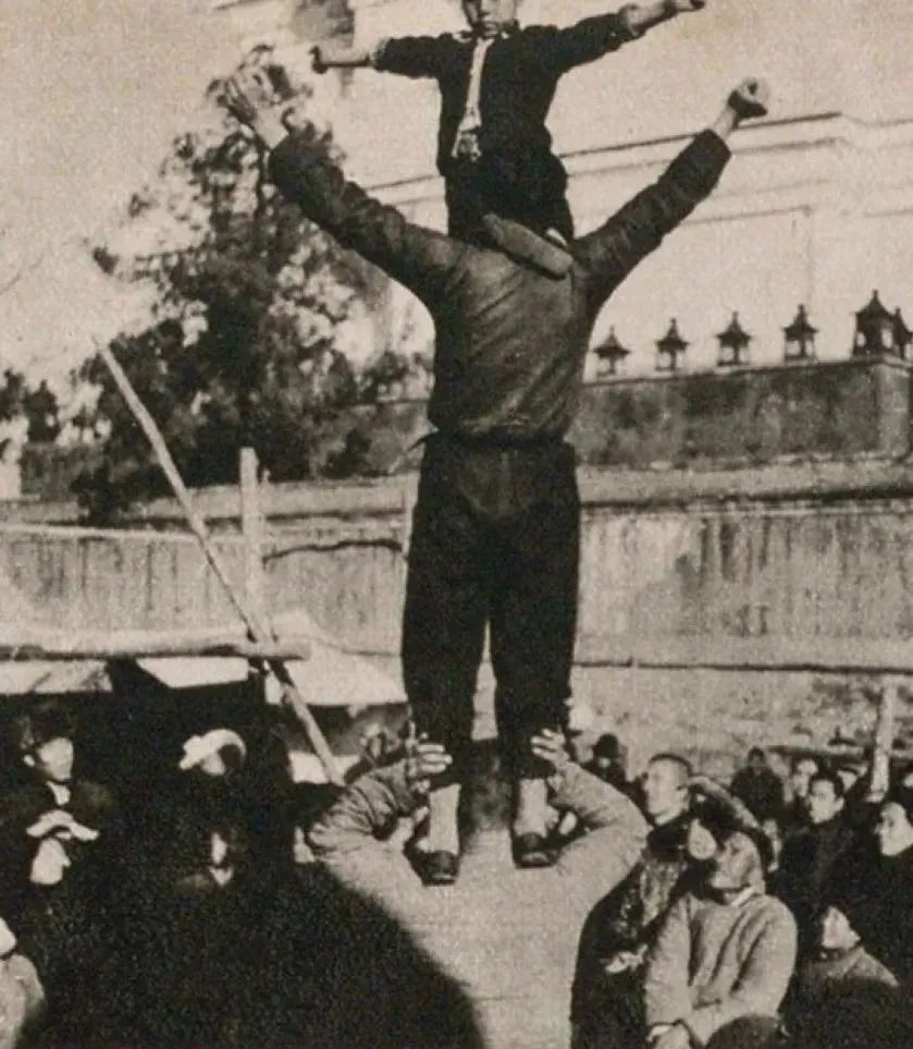 艺高胆大的叠罗汉杂技吸引了不少人围观。