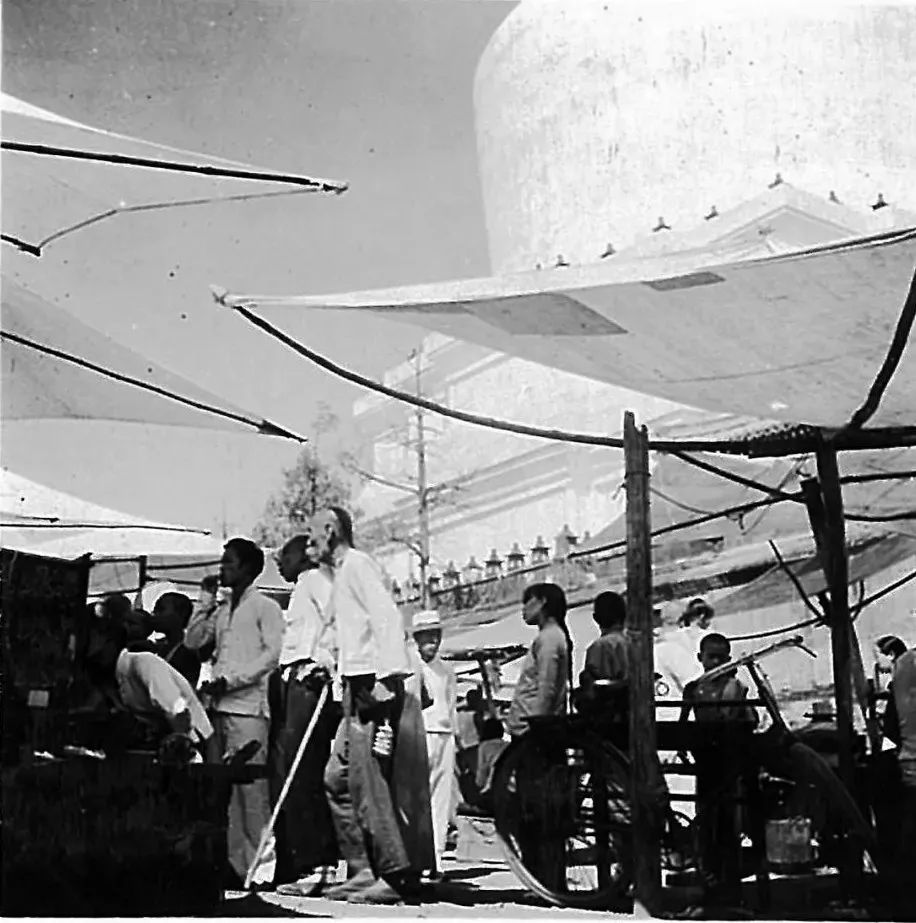 其实,准确地说,白塔寺庙会应该算是庙市。因为,它在开办时,庙内没有法事活动,游人也不上香礼佛,只是纯粹地购物与游玩、娱乐。在《北平庙会调查》中,白塔寺庙宇面积为1600方丈,庙内集会面积240方丈,庙外集会面积700方丈,合计为940方丈,在“五大庙会”中名列第三,集会商摊共计735个,仅次于隆福寺。