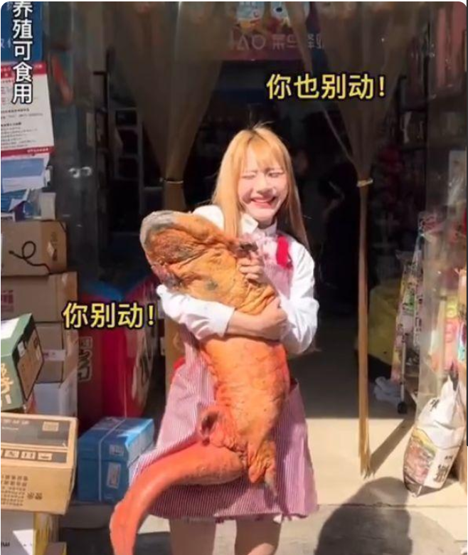 众所周知,食用重点保护野生动物涉嫌违法。噬人鲨也称大白鲨,依照法律,对这种级别的野生动物,是严禁上岸、销售、购买的,更不用说现场分食了。据报道,目前警方已介入调查,若违法行为确凿,这位博主肯定就凉凉了。不过,即便不谈这条鲨鱼,她账号下满目的“重口味”,也足以令网友三观震碎。“200斤巨型鸵鸟王”“百里挑一的黄金娃娃鱼”……各种非常规食谱的动物,都被她吃下了肚。前一秒还抱在怀里犹如“萌宠”,下一秒就上刀刮皮,强烈对比给观者极度不适,有人直言“犹如看了一部拍恐怖片”。