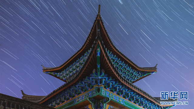 在丽江木府上空拍摄到的星轨(视频截图)。新华网发(陈斌 摄)