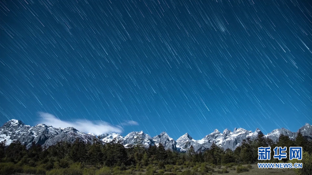 星星“垂落”云南丽江玉龙雪山(2020年5月8日摄)。新华网发(陈斌 摄)