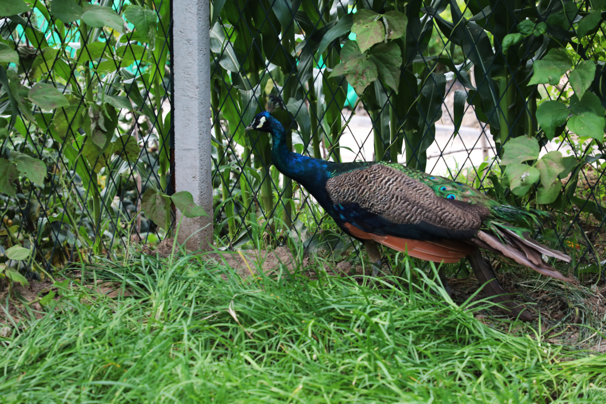 榆垡镇派出所民警和动物园工作人员来到村民家门口,发现这只孔雀就在小菜园里,于是将其抓住以后,带到了野生动物园,动物园工作人员表示,这只孔雀的生命体征良好,但自然放生后难以生存,目前这只孔雀已被北京野生动物园收养,给这只孔雀找了一个新“家”。