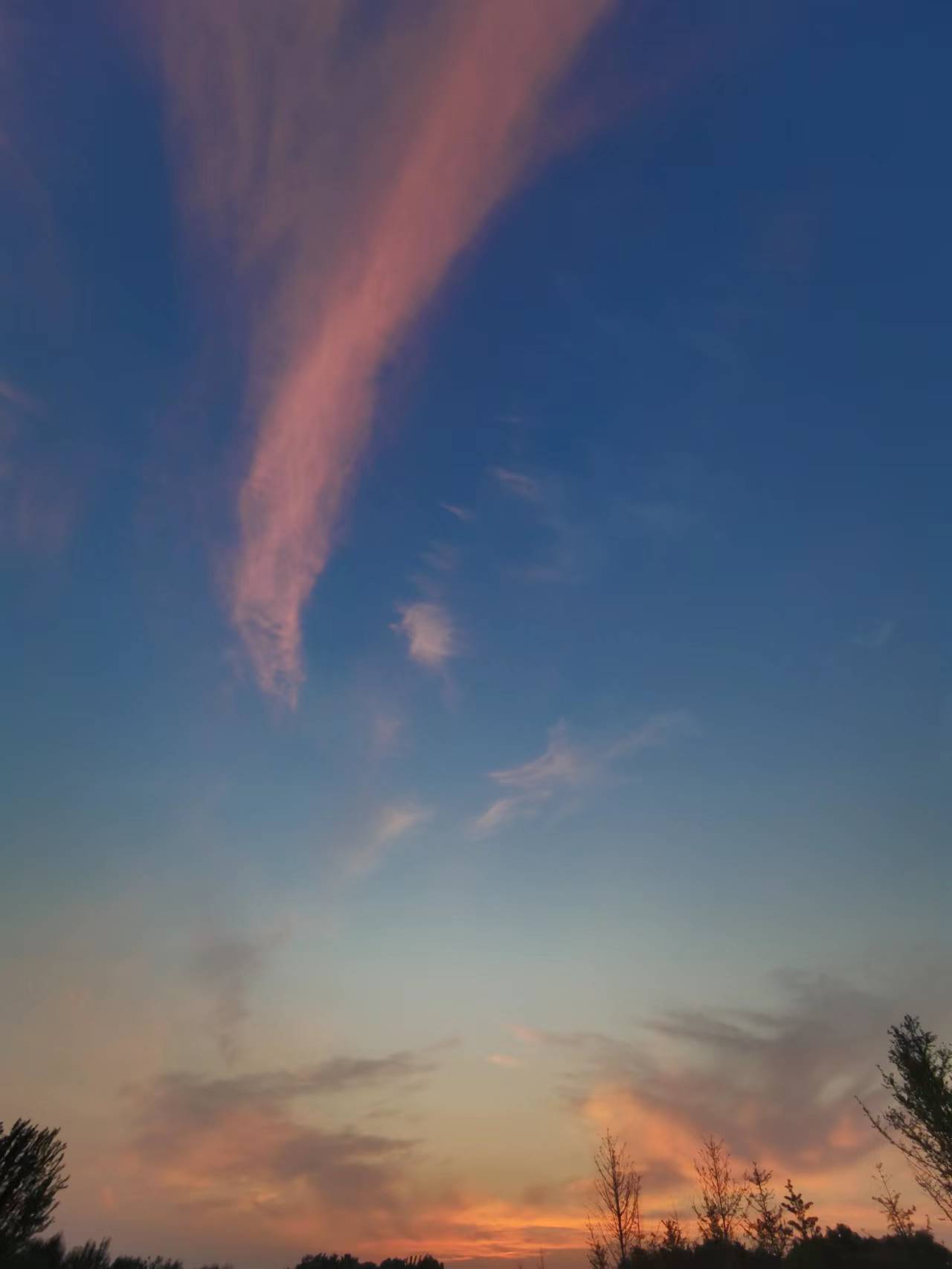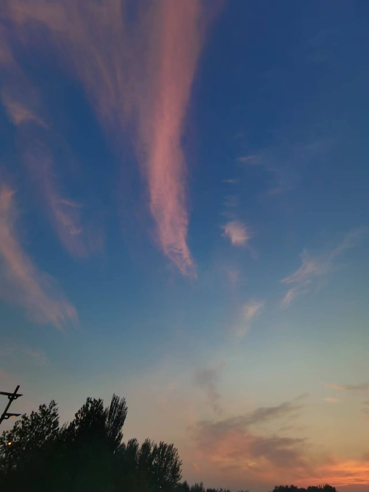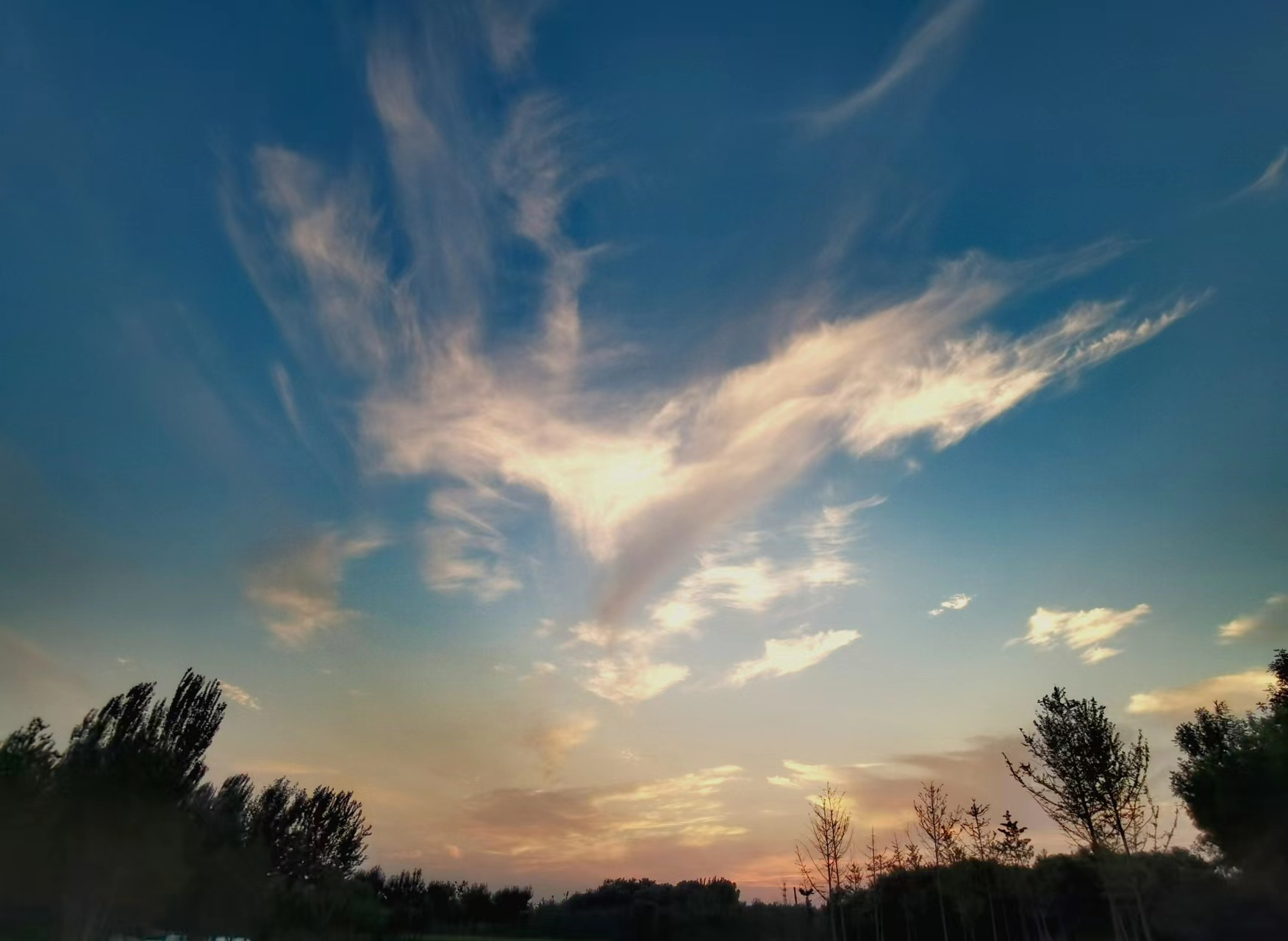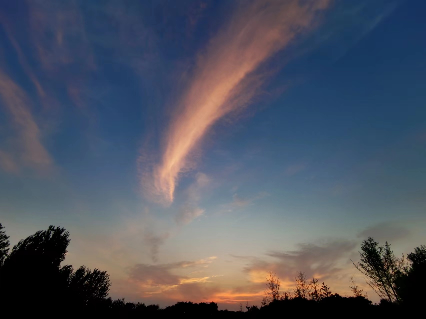 19时40分许,北京南海子公园,太阳已经落山,西边天空染上一抹红晕,天空一片细长的云彩化为“天使之翼”,飘逸壮美!