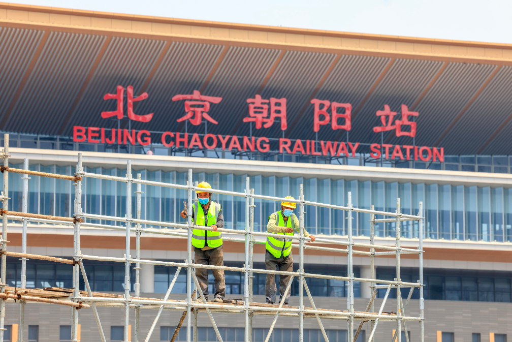 烈日当头,工人一手抡起焊枪,一手举着防护面罩,被太阳炙烤得滚烫的钢筋瞬间迸发出耀眼的火焰,不一会儿,汗水已经浸透了衣衫。7月16日,头伏的第一天,北京朝阳站交通枢纽项目的650余名工人坚守在建设的第一线。