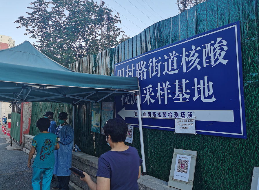 田村路街道党工委副书记沈炤宇介绍,为避免居民和工作人员中暑,山南路核酸检测点还开设了一间空调休息区,并贴心地准备了水果、冷饮和防暑药品以及折叠床,供大家取用。“田村路街道一共布置了24个核酸采样点,完全能够满足全街道居民测核酸的需求,仅山南路核酸检测点就有四条排队通道,居民排队等候不会超过5分钟。”沈炤宇说,“我们的想法很简单,居民少排队一分钟,就少晒一分钟,中暑的可能性就少一分。”