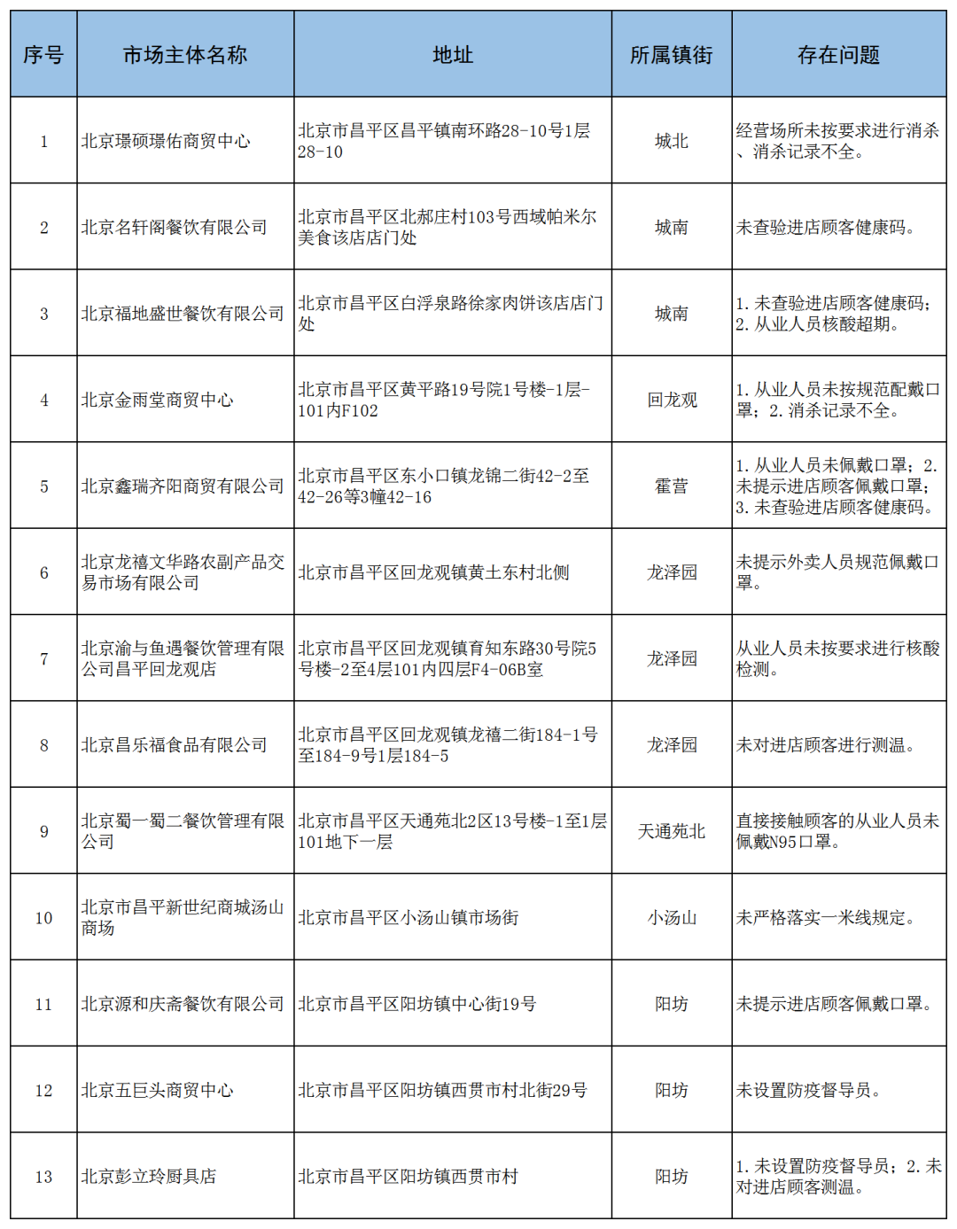 现将防疫措施落实严重不到位的市场主体通报如下: