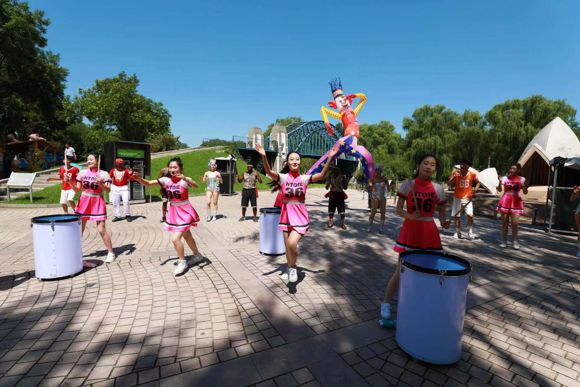 由多位中外演员组成的“戏水风情大巡游”为游客呈现“一天一世界 一步一风情”的视觉盛宴。来自中国、俄罗斯、古巴、乌干达、西班牙的中外演员,以世界公园亚、非、欧区文化景观为背景,零距离、沉浸式上演“五洲迎宾狂欢、世界风情歌舞、儿童剧《欢乐一二三》等精彩节目,还会定时在戏水乐园与游客互动狂欢。