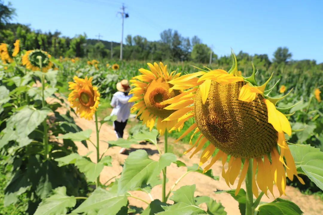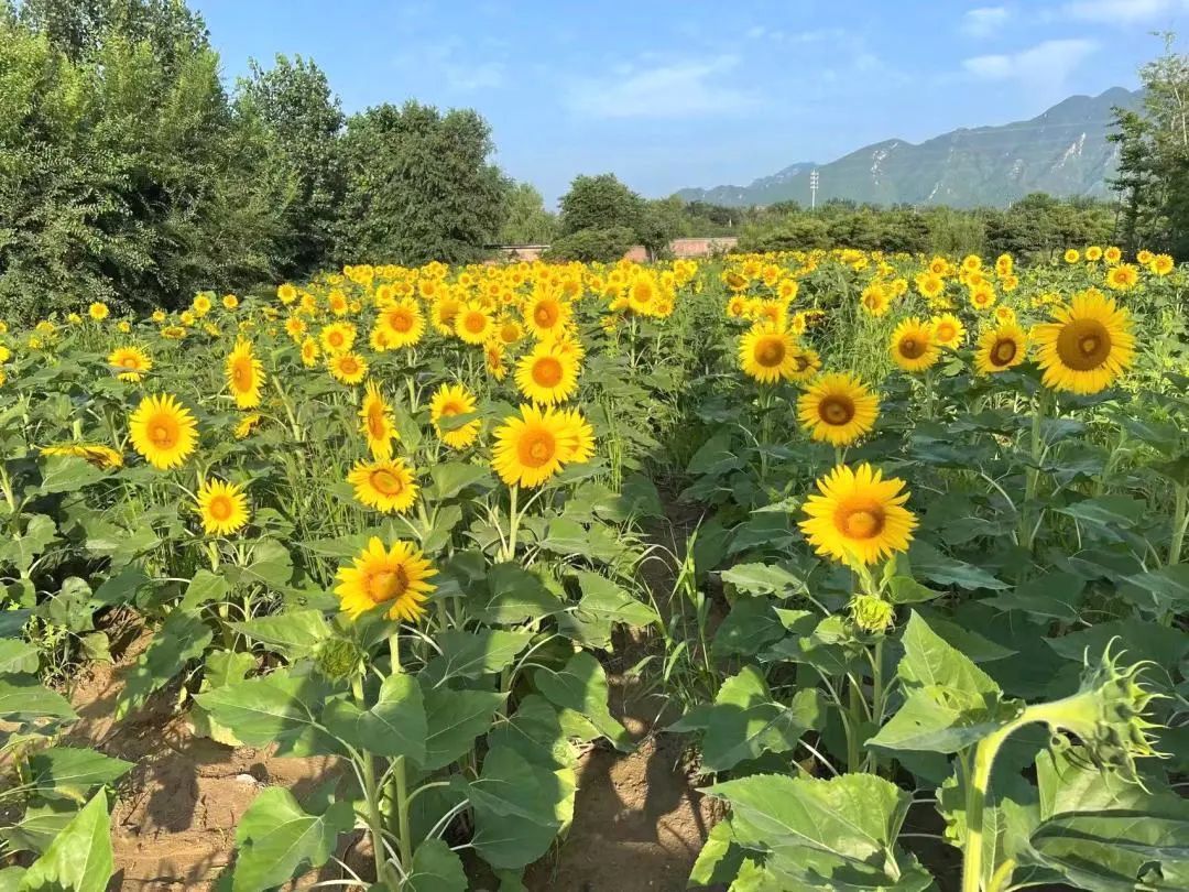 正值盛夏,最近几天的天气都是烈日晴空。似火的骄阳之下,十三陵镇的向日葵花田里一株株向日葵热情盛开,如同晴空下洋溢的笑脸!
