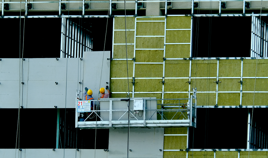 在另外一处高空作业面,保温工刘小平同样辛苦,从事外墙保温岩棉安装的他,即便天气炎热,也要严格按照操作规范,袖口、领口和口罩等防护用品统统扎结实,防止岩棉碎渣碰到皮肤引起刺痒。一滴汗从他的额头滑落到了眼睛里,但为了确保材料安装到位,他只是用力眨了下眼,皱着眉,甩了甩头。