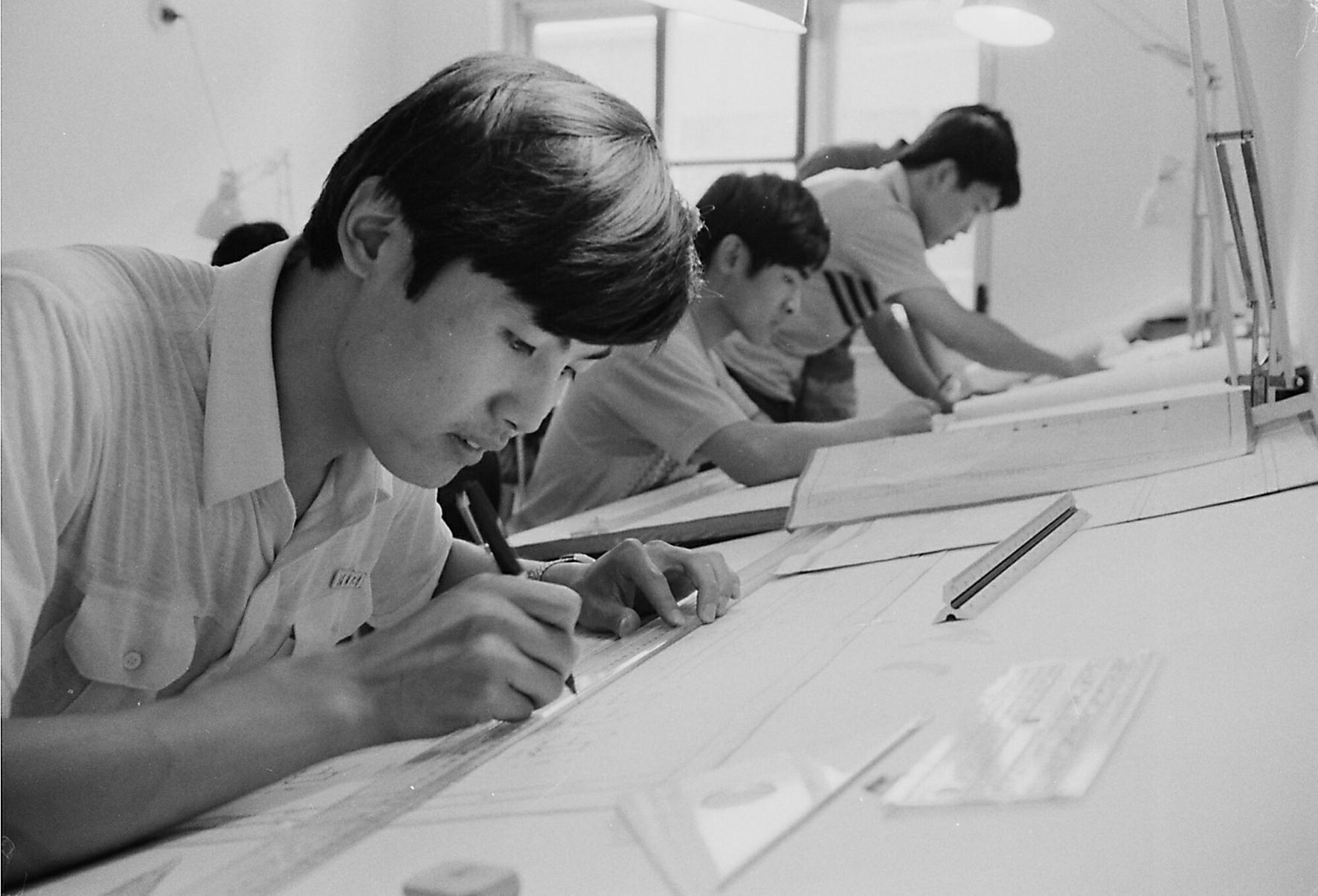 1984年,清华大学建筑系部分学生利用暑假到北京市城市建设开发科研设计所制图描图,勤工俭学。叶用才/摄