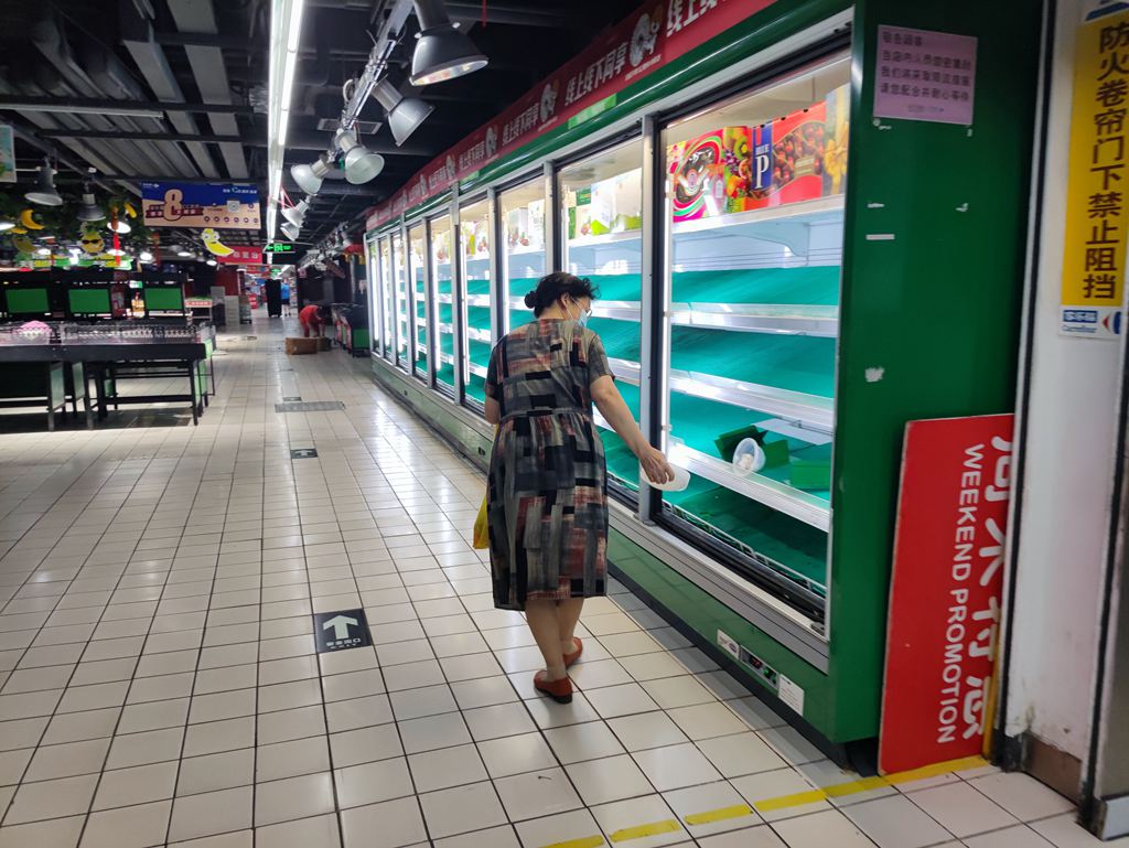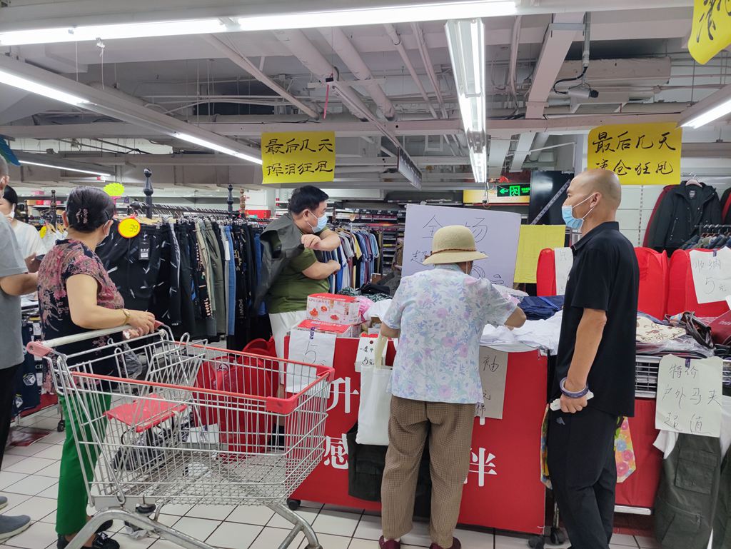 “听邻居说,家乐福超市要闭店了,我们赶紧来看看。”7月20日上午,顾客三三两两进入超市。超市门口贴着告示:“因我店即将升级改造,将于2022年7月23日暂停营业。由此给顾客和周边社区带来的不便,我们深表歉意……”超市内,也挂着“短暂离开是为了更好的相聚”“本店即将改造,全场特价清仓”“最后几天,清仓甩卖”等条幅。