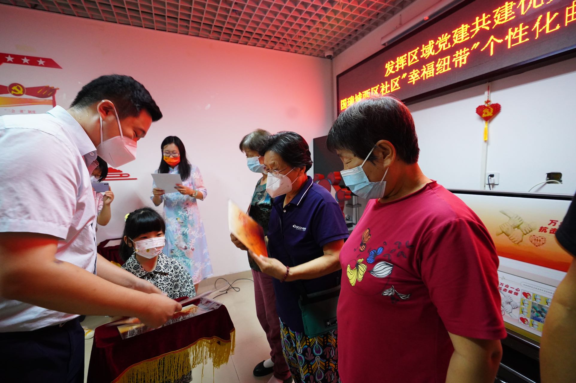 7月21日,由国瑞城西区社区共建单位——中国邮政集团精心制作的、印有16名在疫情防控中做出突出贡献的社区志愿者个人头像的个性化邮票和邮折送到志愿者本人手中,以表达社区对志愿者们辛苦付出的感谢。