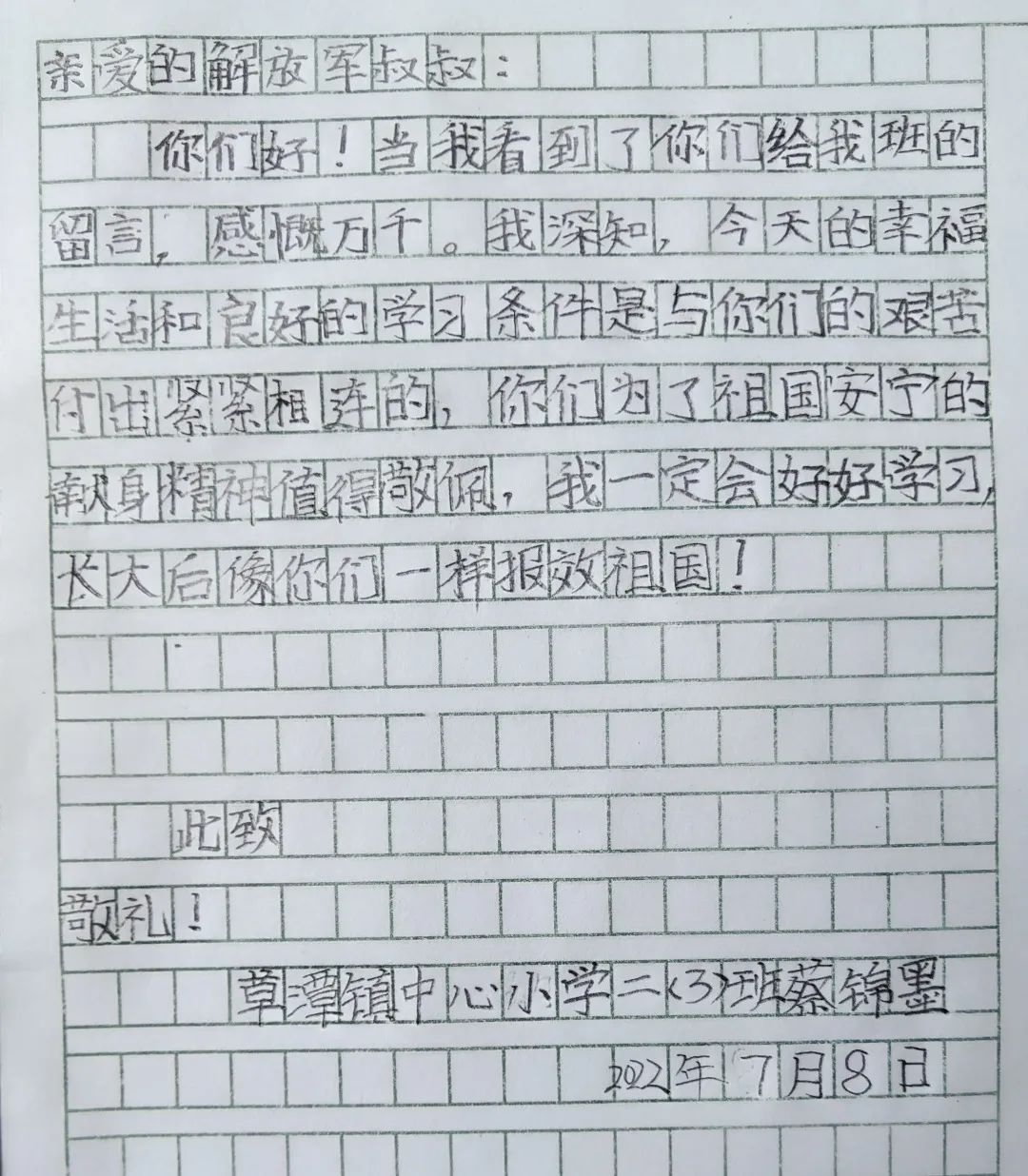 长大后像你们一样报效祖国!”