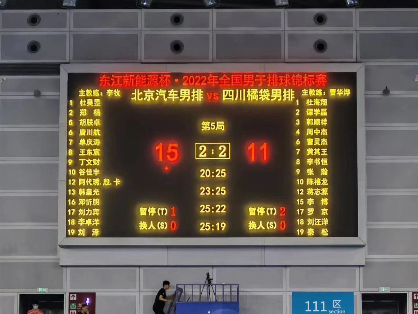 7月22日18时10分,经过两小时10分钟的五局鏖战,以青年军主打的北京汽车男排在广东江门体育中心结束的2022年全国男排锦标赛首场比赛中,在落后两局的不利情况下连扳三局,并在最后时刻依靠小将邓忻朋连发三箭直接得分,让北汽男排15比11拿下决胜局,并以总比分3比2逆转力挫阵容稳健成熟的四川橘袋男排,这也是李牧再度出山执教北汽男排的首秀。