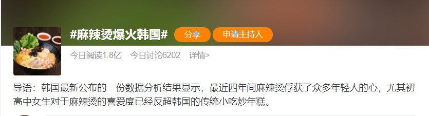 韩国最新公布的一份数据分析结果显示,最近四年间麻辣烫俘获了众多年轻人的心,尤其初高中女生对于麻辣烫的喜爱度已经反超韩国的传统小吃炒年糕。