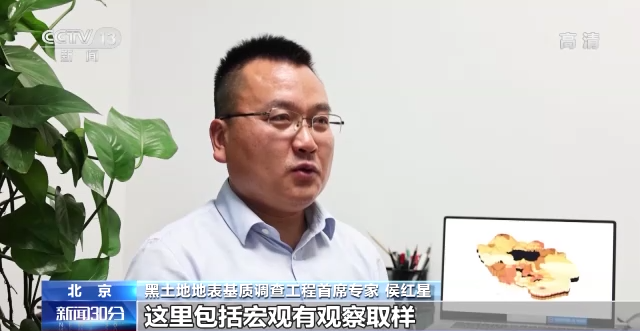 黑土地地表基质调查工程首席专家 侯红星:从地表到地下,从宏观到微观,这里宏观有观察取样,到微观它有鉴定分析测试等等。在这个基础上,我们通过由点到线再到面,最后对黑土地地表地质层的空间结构模型进行整体调查。