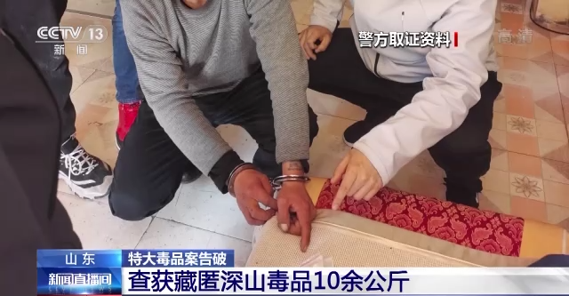 济南市公安局禁毒支队办案民警:我们根据他既往的聊天信息,锁定了一个大致范围之后,后来在中缅边境山区里面废弃的一个农舍,发现了藏匿在一个床板下边2包疑似毒品的东西。在这2个蛇皮袋子里边包装的冰毒片剂13.5公斤。