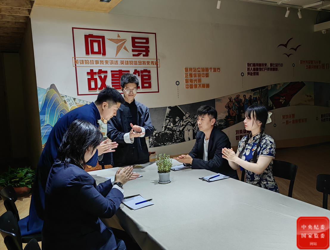 在河南省洛阳市涧西区“向导故事馆”内,年轻党员干部通过红色剧本“穿越时空”对话革命先贤,重温烽火岁月,感悟革命精神,增强历史自觉坚定文化自信。(河南省洛阳市涧西区纪委监委供 宋明涛 摄)