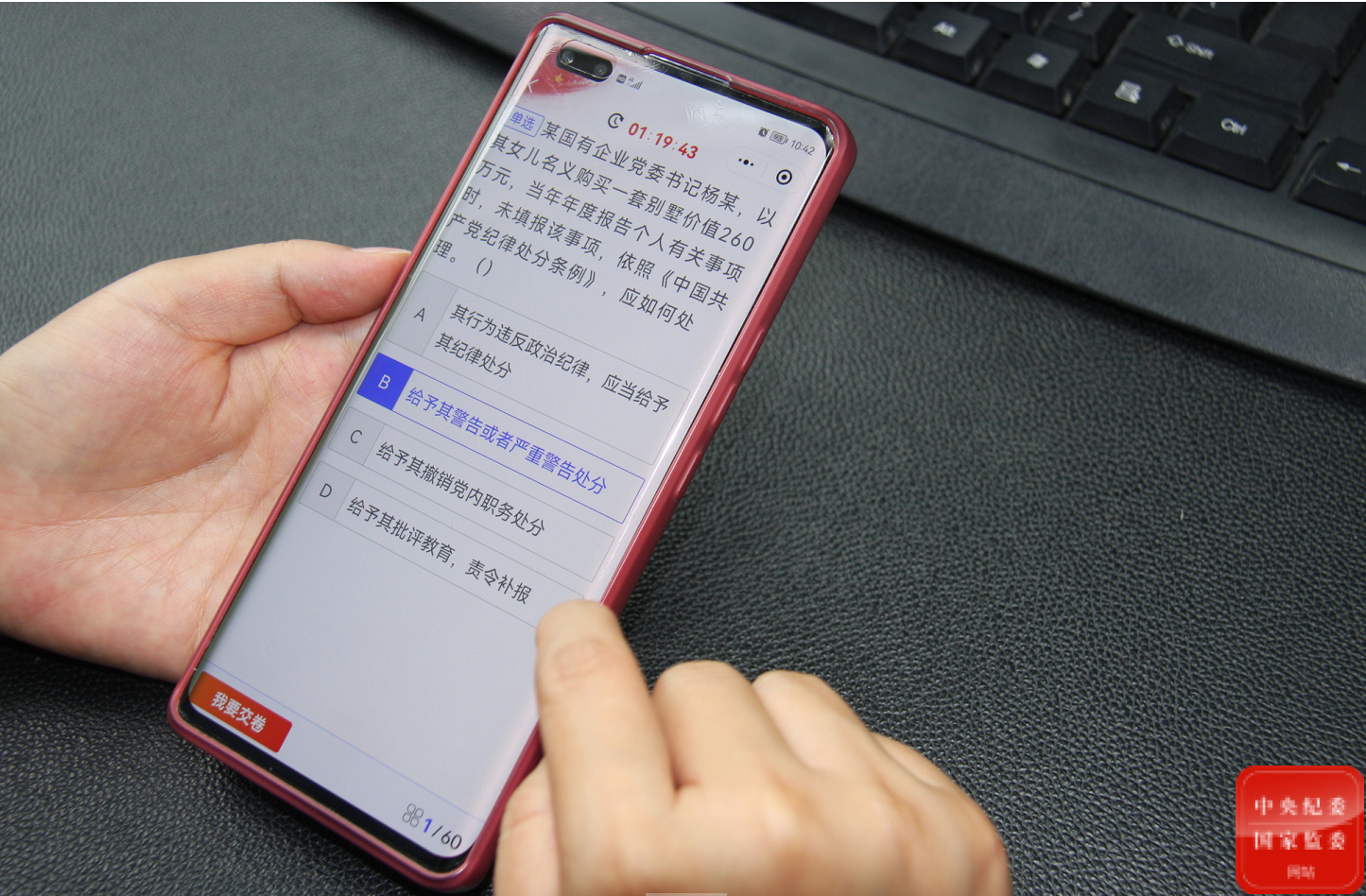 新疆维吾尔自治区阿瓦提县纪委监委采取多种举措抓实抓细对年轻干部的从政从业教育,通过廉政家访、 “一对一”帮扶、线上测试等方式,打好干部教育管理监督“组合拳”。图为该县纪委监委干部通过“阿克苏纪检监察”微信公众号参与测试。(新疆维吾尔自治区阿瓦提县纪委监委供 石娅 摄)