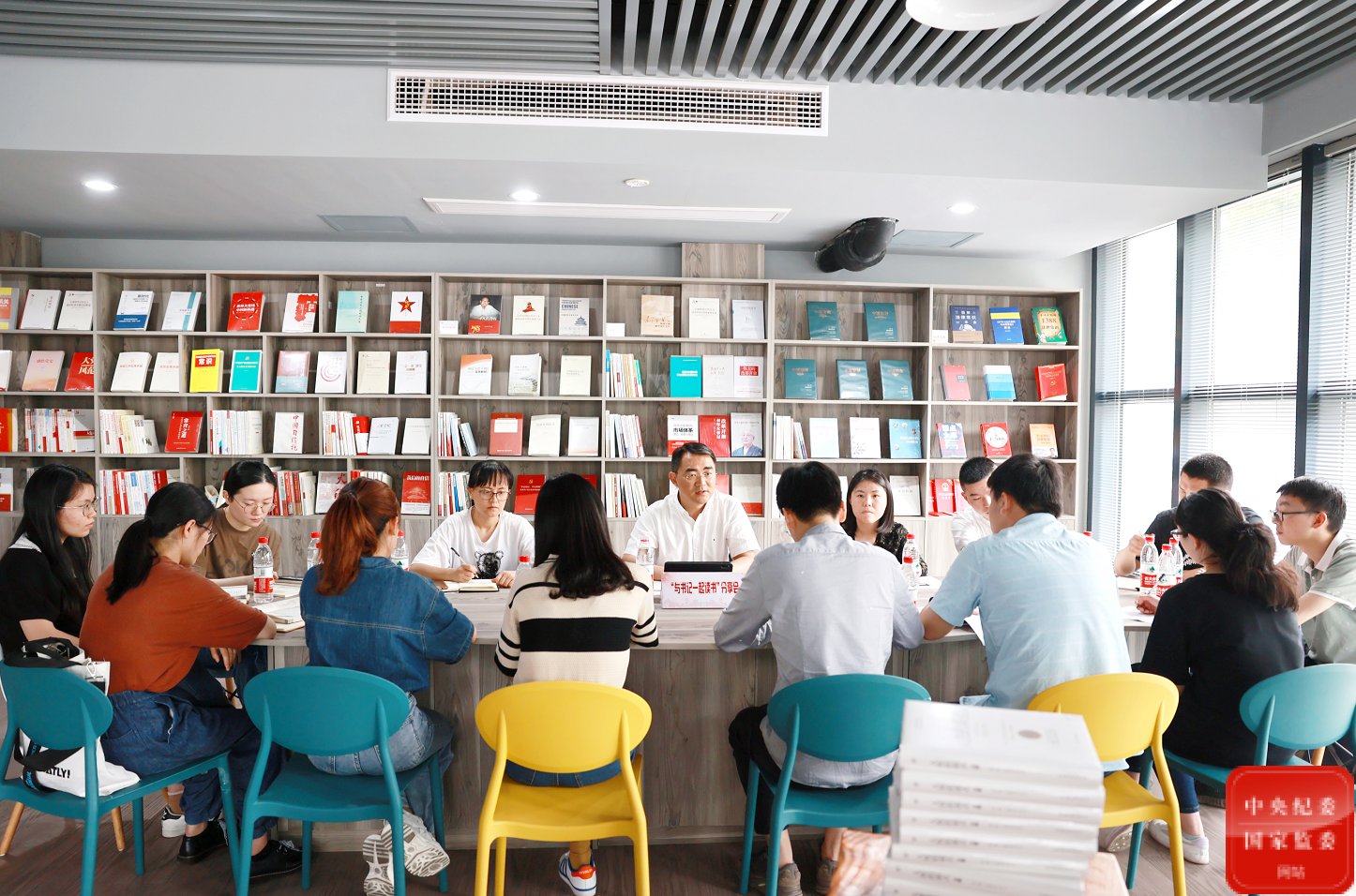 浙江省台州市椒江区纪委监委举办“和书记一起读书”分享会,培养青年干部好读书、读好书的习惯,进一步夯实年轻干部清廉思想根基。(浙江省台州市椒江区纪委监委供 王媛 摄)