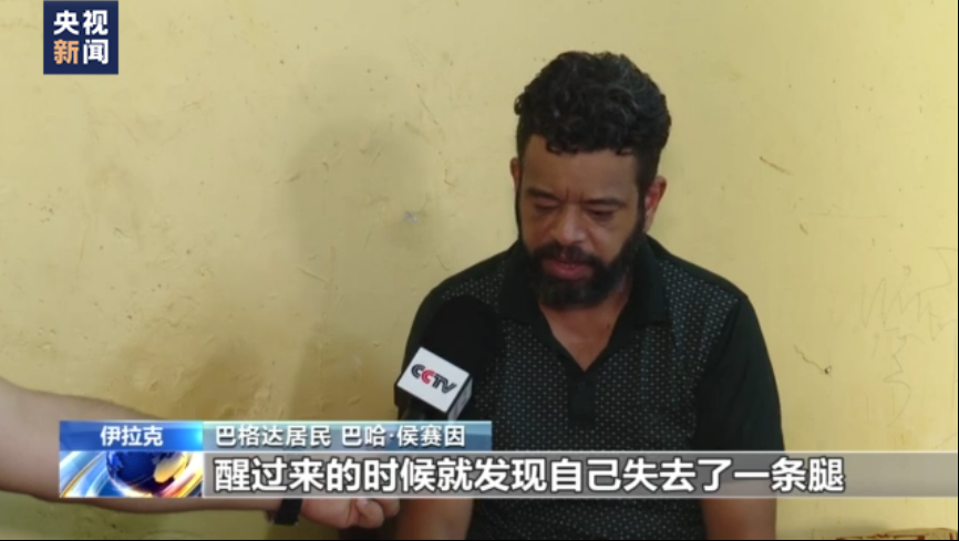 画面里的这个中年人名叫巴哈·侯赛因,他在2007年遭遇到美军袭击,左腿被爆炸弹片击中留下了很深的疤痕,而右腿被炸断,导致终身残疾。侯赛因回忆说,他的伤是美国飞机轰炸所造成的,尽管事情已经过去了十多年的时间,但美国驻军给伊拉克人留下的创伤却依然留存。