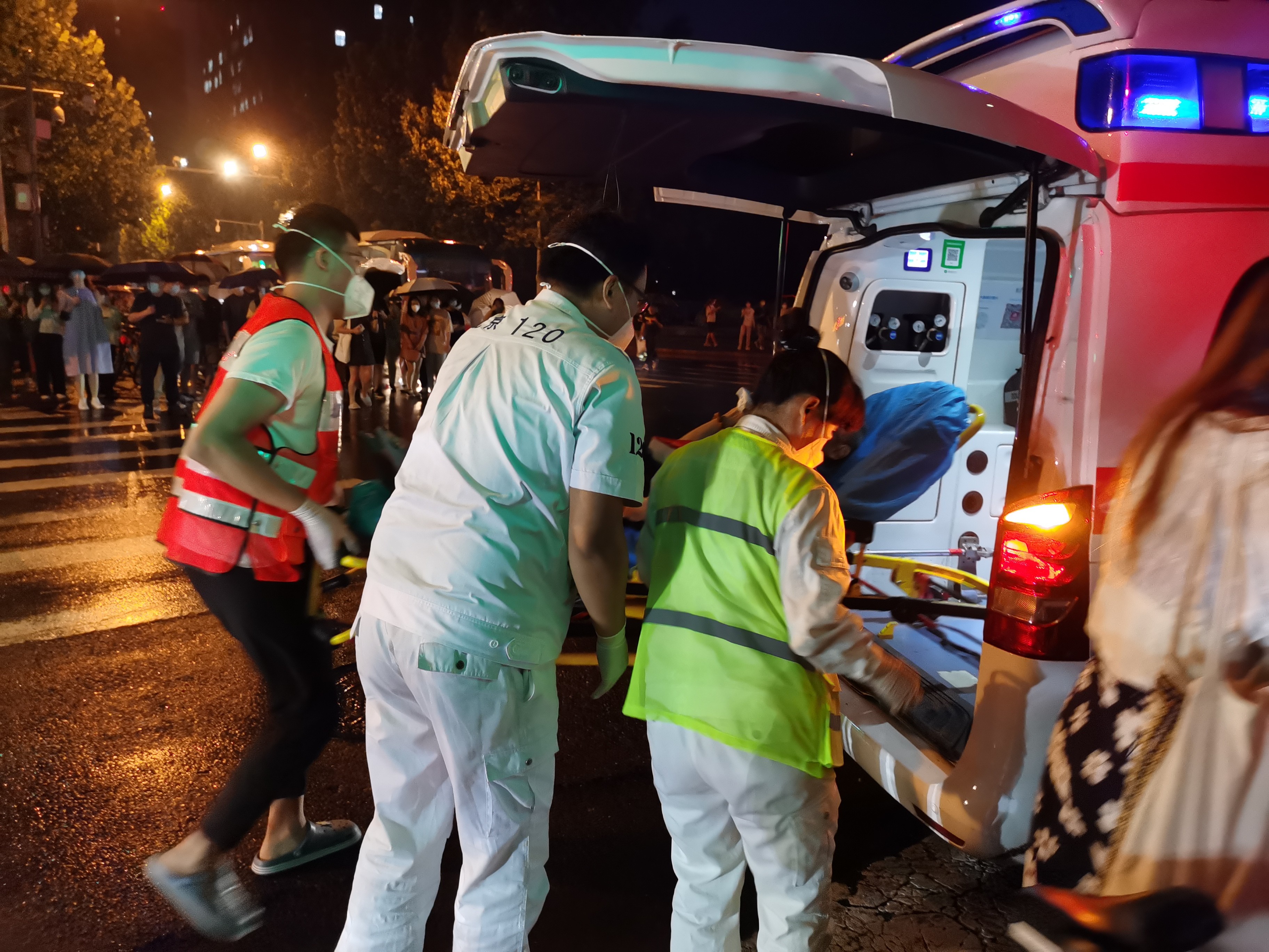 20时20分,雨停了,杨文暖和张振宁返回救援中心休息。进门,张振宁拧开矿泉水瓶盖,刚放到嘴边,还没等喝上,另一个任务又来了:一位大爷在路边突然走不动路,打120急救中心电话请求帮助紧急送医。