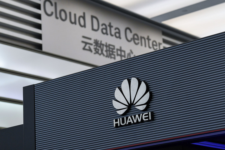 2019年11月24日拍摄的华为展厅内的企业logo新华社记者 梁旭 摄