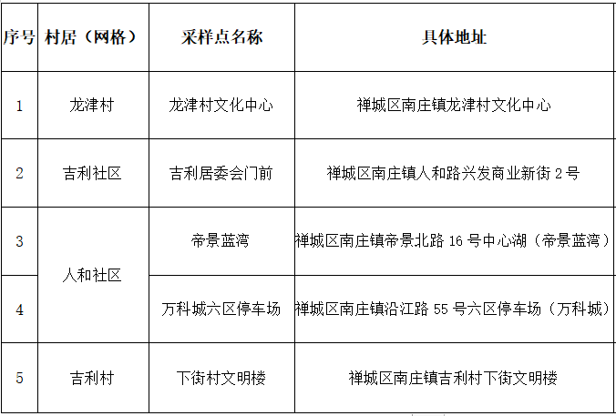 南庄镇7月31日上午核酸采样点一览表
