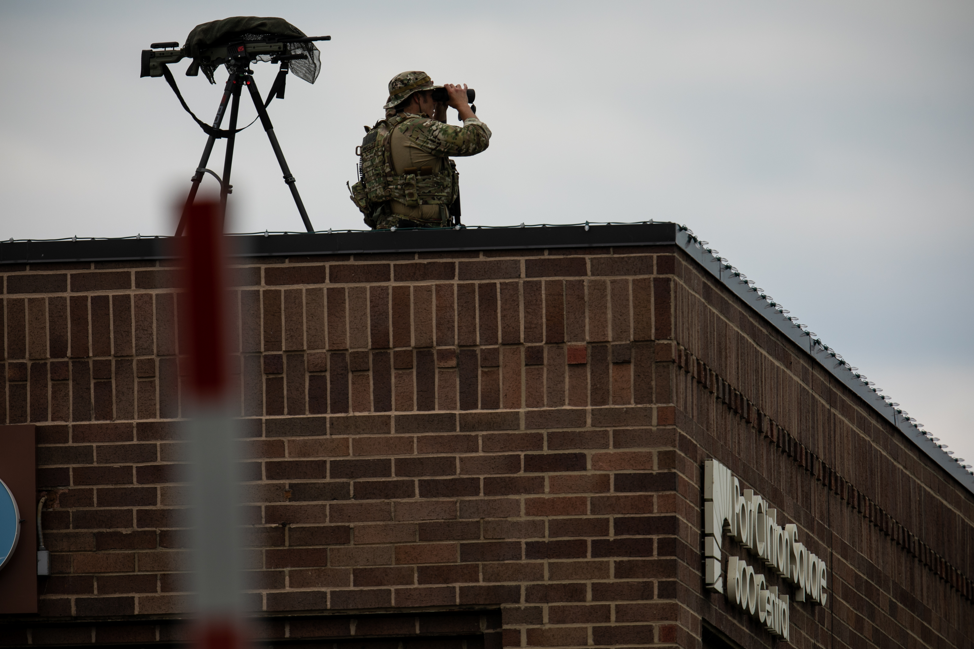 7月4日,一名狙击手在美国伊利诺伊州海兰帕克市警戒监视。新华社发(文森特·约翰逊摄)