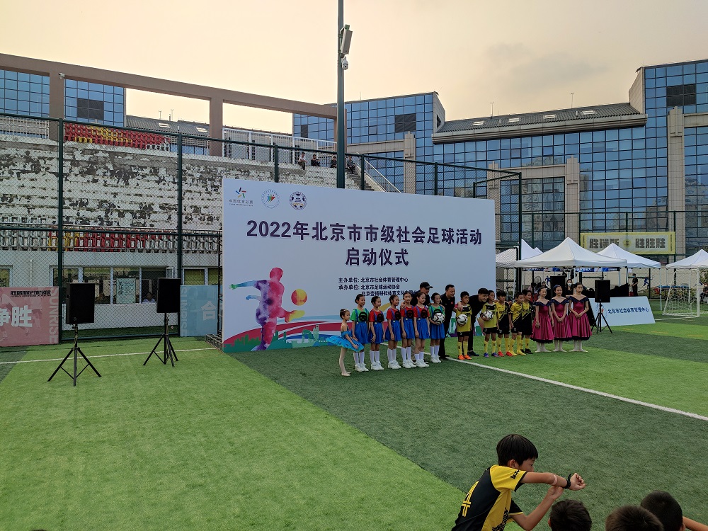 7月31日,2022年北京市市级社会足球活动启动仪式在朝阳区首开望京体育园举办。本次活动由北京市社会体育管理中心主办,北京市足球运动协会、北京壹扬耕耘体育文化有限公司承办。北京市社会体育管理中心主任孔宪菲、北京市足球运动协会常务副主席兼秘书长刘军等出席了本次活动。