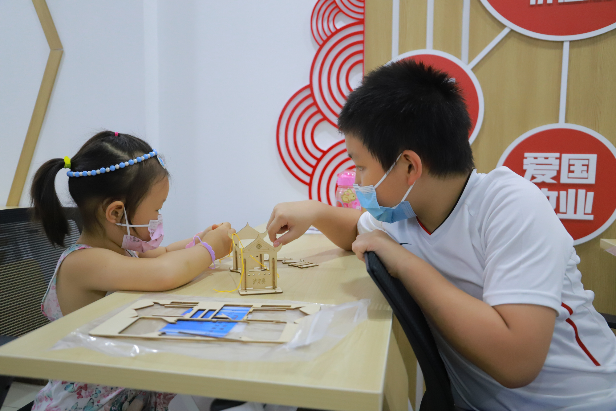 活动上,老师带领青少年们观看红军长征影片《飞夺泸定桥》,并耐心讲解拼插桥头、穿制桥面、系好扶手等“泸定桥”手工制作技巧。随后,青少年们纷纷动起手来,互相帮助,认真投入,一个个独具特色的“卢沟桥”初具模型,收获了满满的幸福感与自豪感。