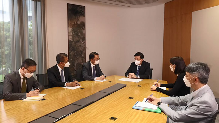 香港特区行政长官李家超3日在行政长官办公室主持会议,就美国众议院议长佩洛西窜访台湾一事,重申香港特区政府的立场。他表示,特区政府全力支持及配合中央政府所采取的必要措施,坚决捍卫国家主权和领土完整。出席会议的包括特区政府政务司司长陈国基、财政司司长陈茂波、律政司司长林定国、行政长官办公室主任叶文娟。