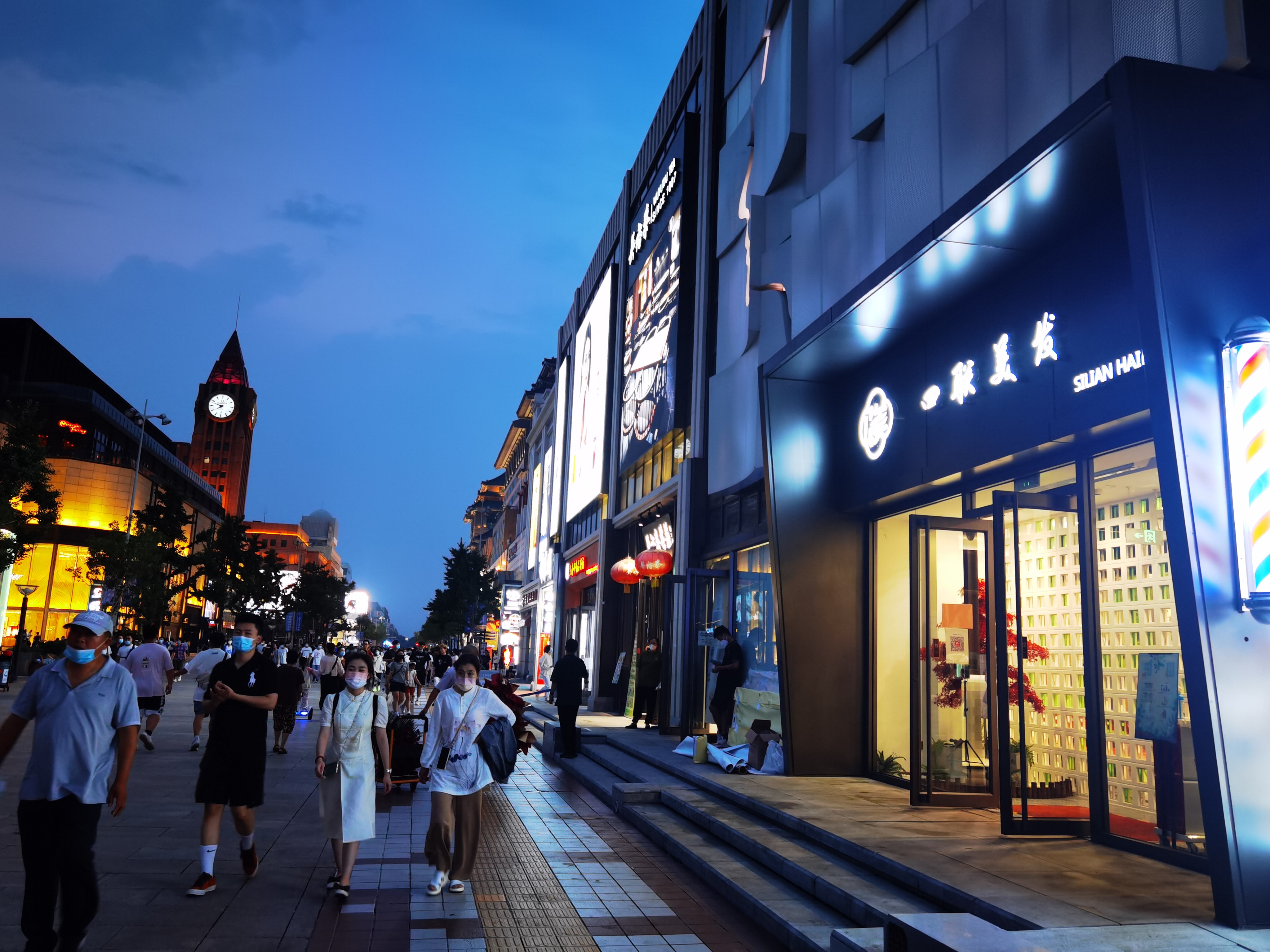 夜幕降临,三伏天的金街王府井人流熙来攘往。绚丽的霓虹、琳琅的商品以及经重装焕然一新的老字号,吸引了人们前来消暑纳凉,王府井又恢复了往日的热闹,金街多了“烟火气”。