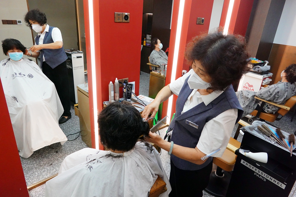 归秀凤是北京市劳模,在四联美发已经工作42年,是四联美发大师工作室的一员,最熟的老顾客40年来一直找她美发。