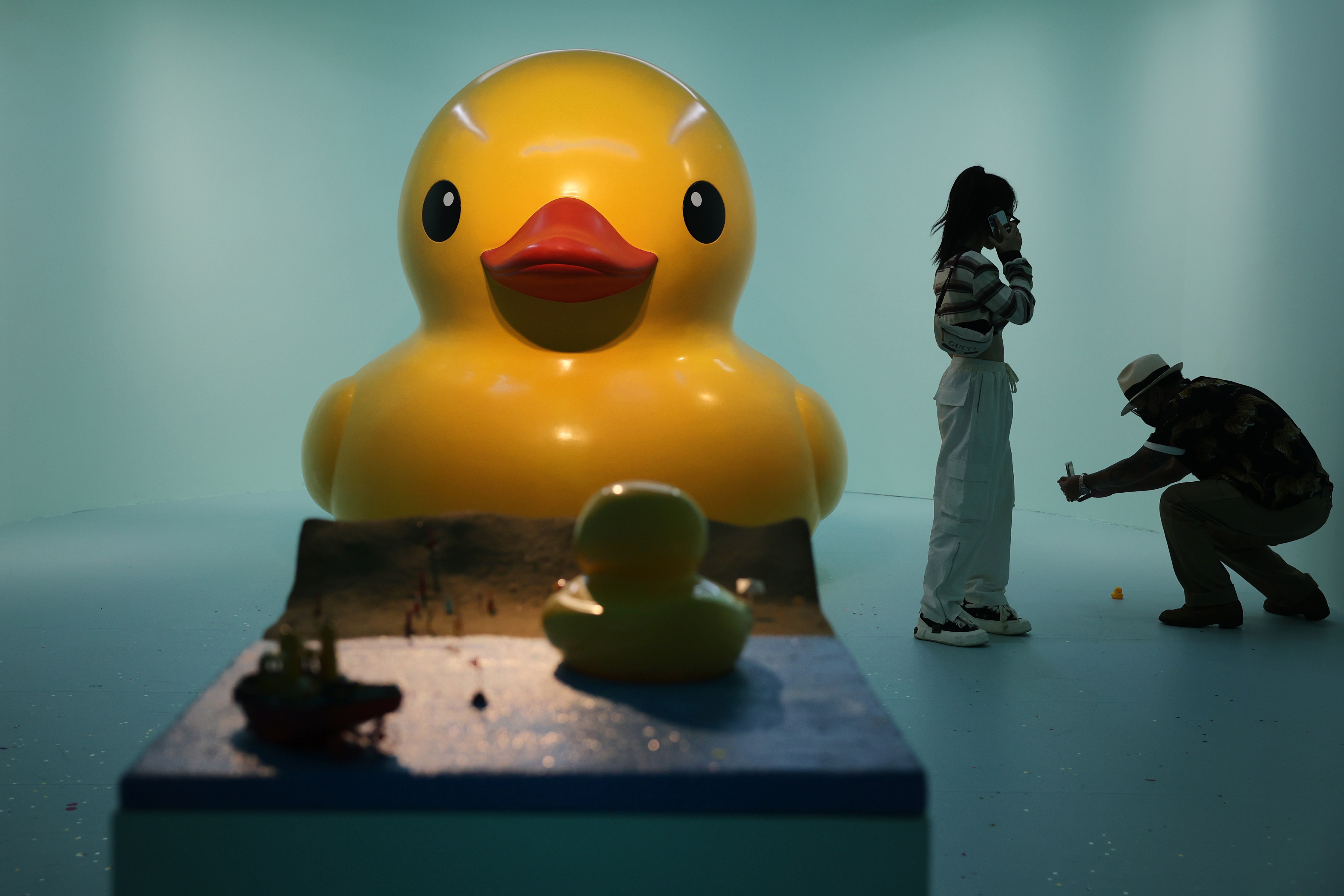 荷兰艺术家弗洛伦泰因·霍夫曼因“大黄鸭”被人们所熟知。这只高26米的巨型橡皮鸭先后在全球20多地巡展,成为迄今为止全世界最知名的概念艺术作品之一。8月5日,霍夫曼在中国内地的首次大规模个展“欢聚!”亮相今日美术馆,“大黄鸭”携熊猫、老虎等“动物天团”来到北京,20多个全新作品为首次与观众见面。