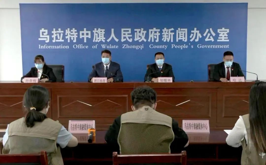 发布会由乌拉特中旗旗委常委、宣传部部长孙春梅主持,乌拉特中旗旗委常委、政府党组成员、旗委办公室主任邬耀林,乌拉特中旗政府副旗长照日格图,乌拉特中旗商务局局长哈达通报了当前疫情防控工作的最新情况,并现场答记者问。