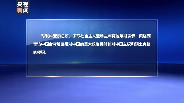 玻利维亚前总统、争取社会主义运动主席莫拉莱斯表示,佩洛西窜访中国台湾地区是对中国的重大政治挑衅和对中国主权和领土完整的侵犯。