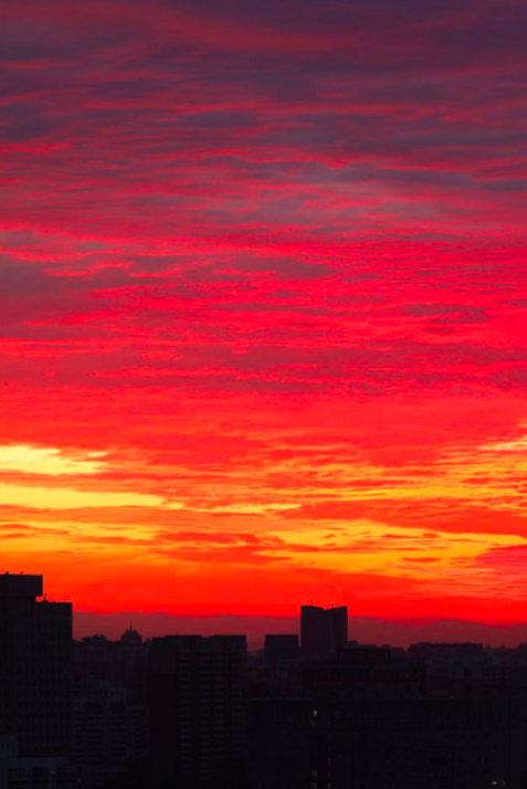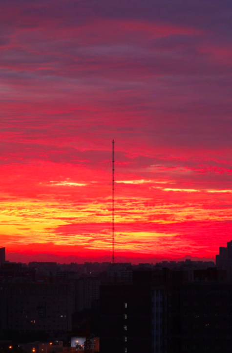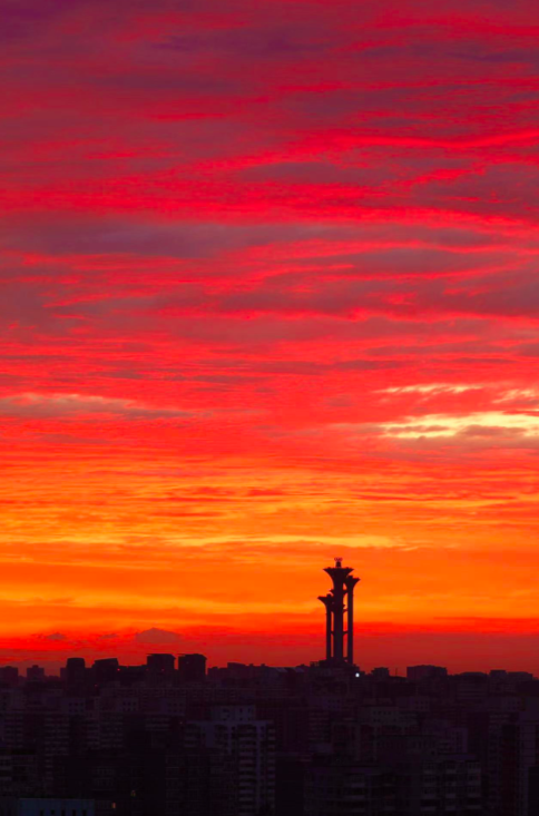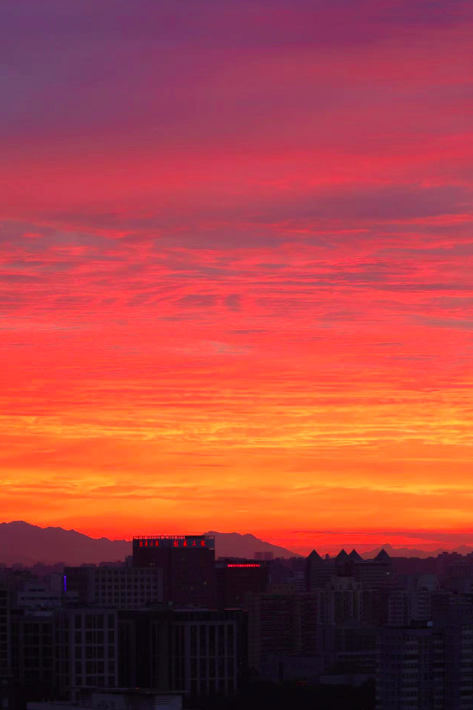 立秋后的第一个早晨,朝霞映红京城