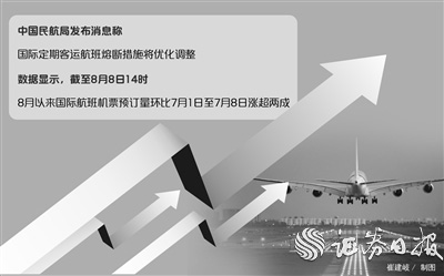 “回国熔断的政策放宽,对国际航班的整体恢复有一定推动作用。”去哪儿网方面相关负责人介绍,去哪儿网大数据显示,截至8月8日14时,8月份以来国际航班机票预订量环比7月1日至7月8日涨超两成。