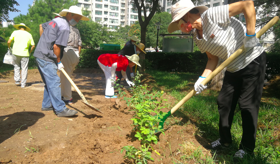 周末的北京持续高温,茉藜园社区的居民们顶着烈日忙碌在社区的花园里,亲手种下一株株月季花,为创建“首都绿化美化花园式社区”添一份力。看着小区内新种植的近3000株月季花,居民对花园式社区充满期待。