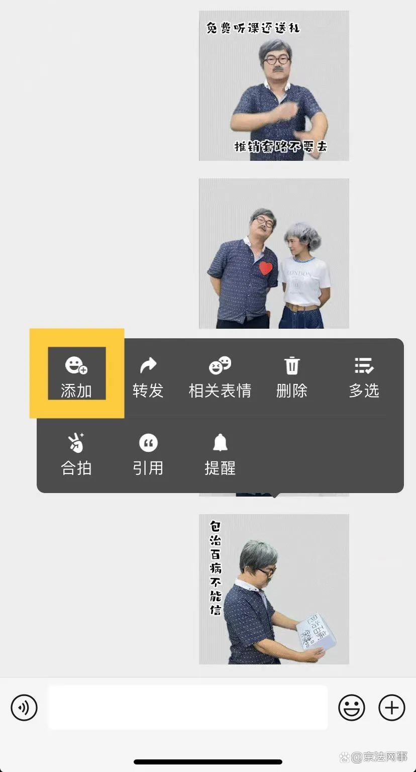 记得长按表情点击“添加”