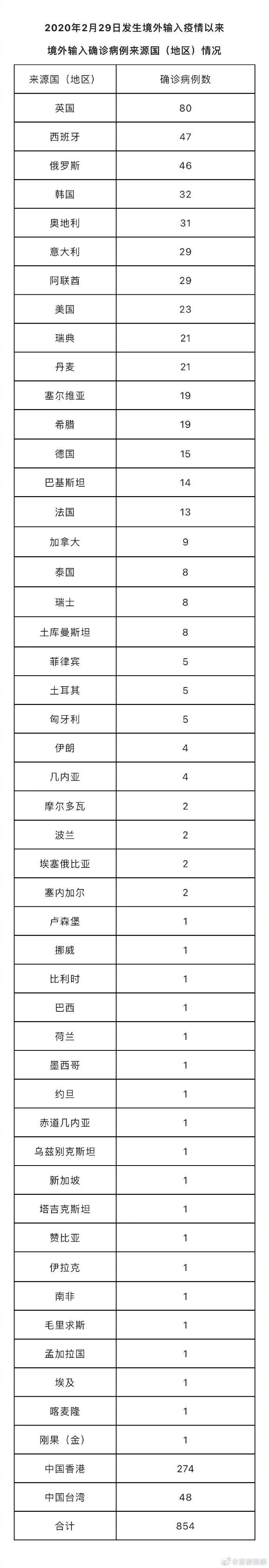 境外输入确诊病例