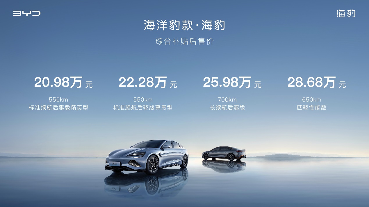 为此,比亚迪方面表示,海豹定价兼顾了动力配置、性能和能耗的多方面考量。海豹的三个续航版本、四个配置等级,针对的是不同用户需求。其中550km标准续航后驱版适合出于家庭增购目的,主要用于城市出行的用户,700km长续航后驱版是首购用户一步到位的最优选,650km四驱性能版适合需要面对冰雪路况的北方用户或是对性能有较强烈需求的用户。