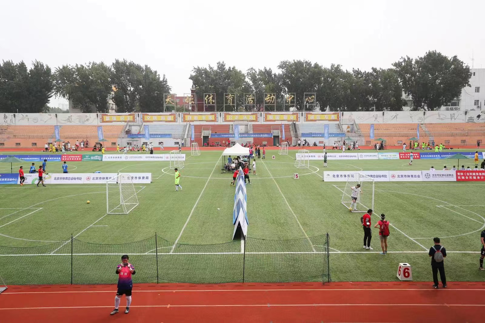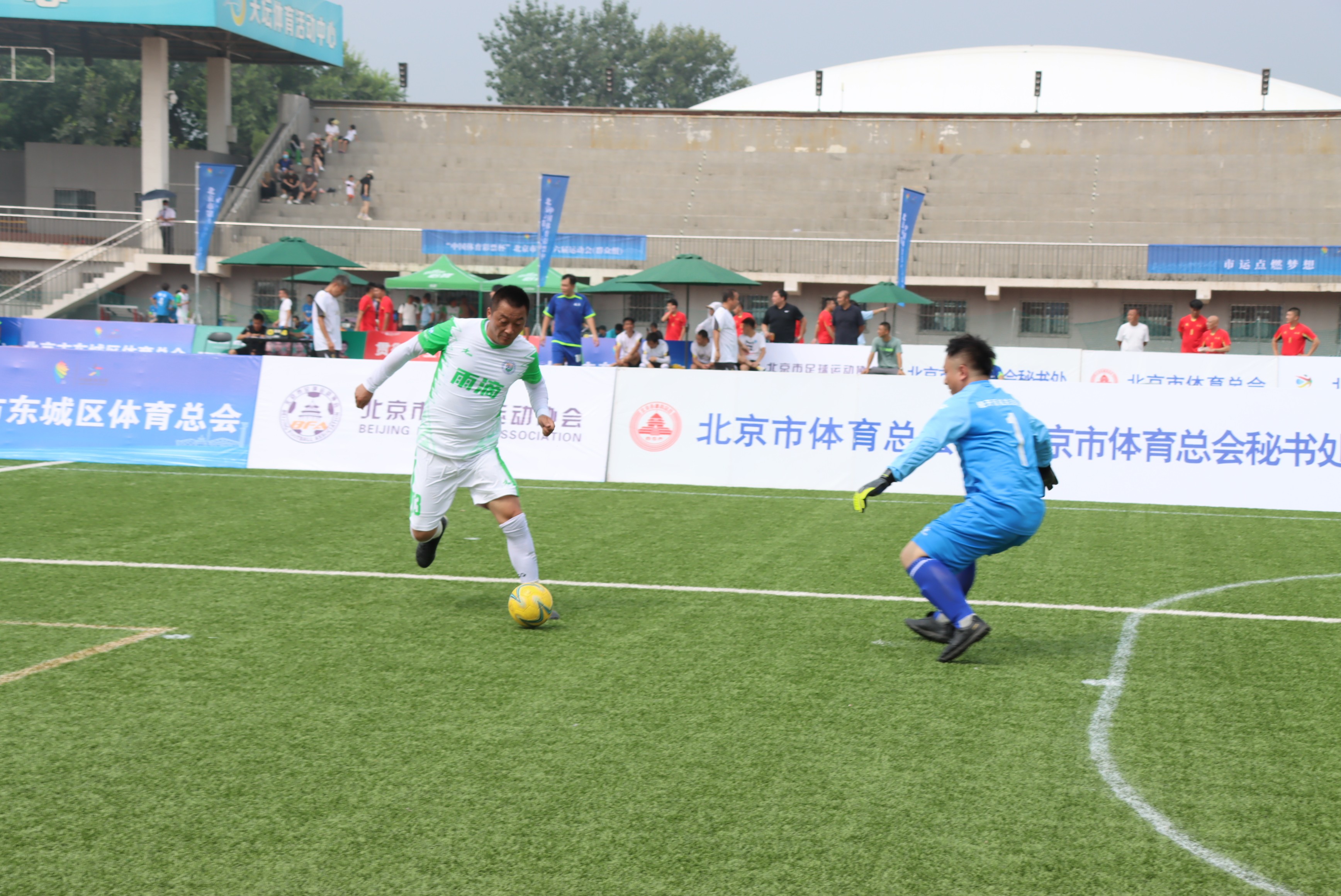 8月13日,由北京市人民政府主办,北京市体育局、北京市体育总会、北京市教育委员会联合承办,北京市体育总会秘书处、北京市东城区体育局、北京市足球运动协会、北京市东城区体育总会、北京市东城区体育活动中心协办的北京市第十六届运动会足球比赛(群众组)在天坛体育活动中心开赛。