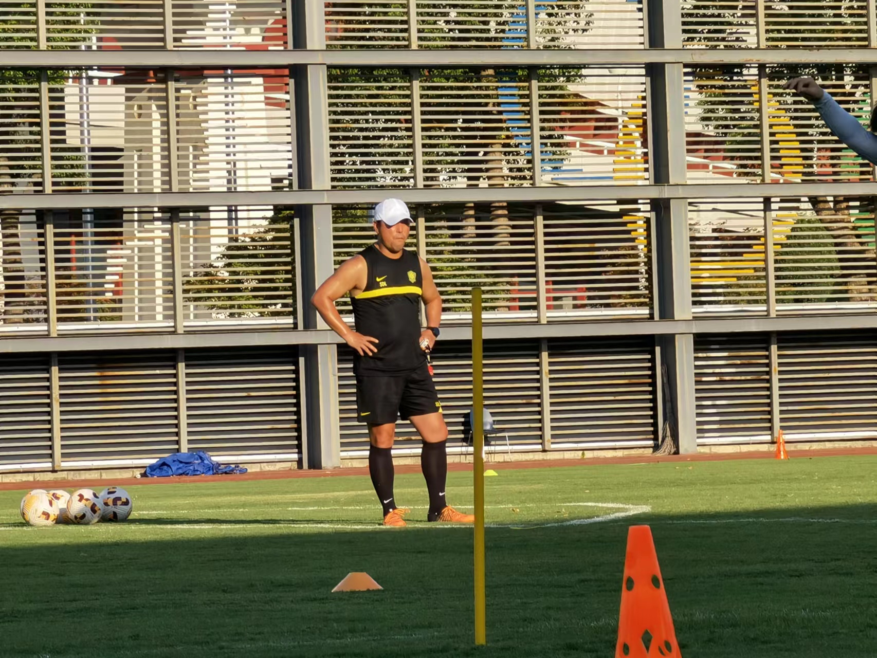 这是隋东亮作为临时主帅带领国安队首堂训练课,有一张A4纸打印的训练要点自始至终攥在他的手里。在球员进行“激活”训练时,隋东亮反复用脚丈量场地,并摆放训练器材。他在传接球训练环节亲自上阵,跟着队员一起跑,提醒队员注意接应。