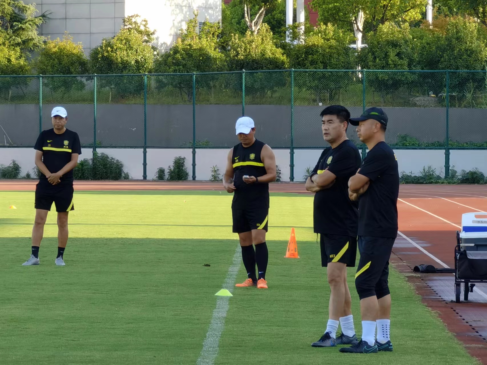 8月14日傍晚,刚刚经历换帅风波的北京国安队来到武汉体育中心1号训练场,展开备战3天后与武汉长江队的中超第13轮比赛。本次训练由代理主教练隋东亮指挥,临时教练组组长魏克兴场边督战。