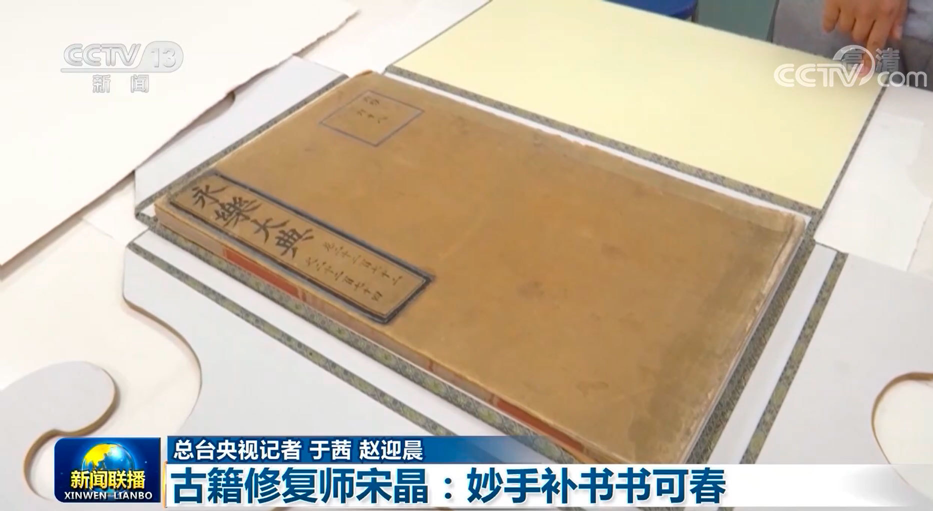目前,宋晶所在的修复小组已经开始《永乐大典》“湖”字册的修复工作。他们亲手织绢、将生丝转为熟丝,再染色老化,还原出逼真的样书封面,完成了修复试验。