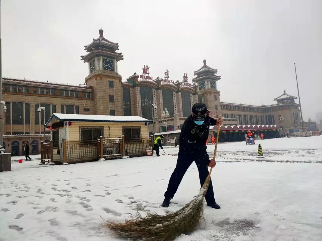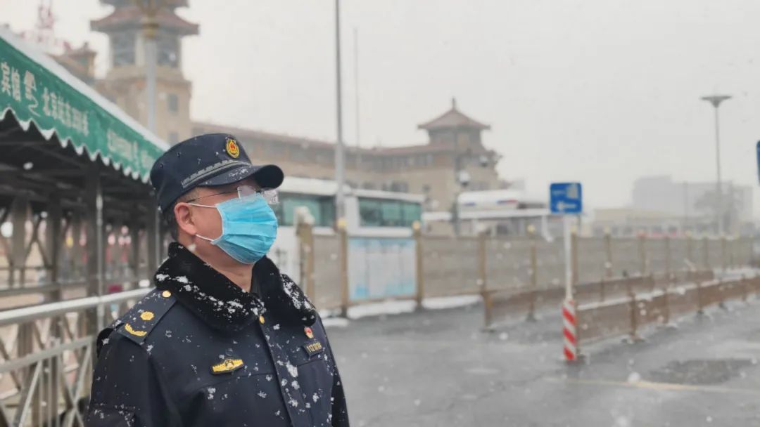 严冬时节,候车大厅暖意融融,站区广场雪花纷飞。城管队员们依然坚守在风雪中,查处非法运营、开展防疫检查、规范环境秩序,不叫苦,不叫累,不退缩!以实际行动诠释首都城管的责任与荣光。